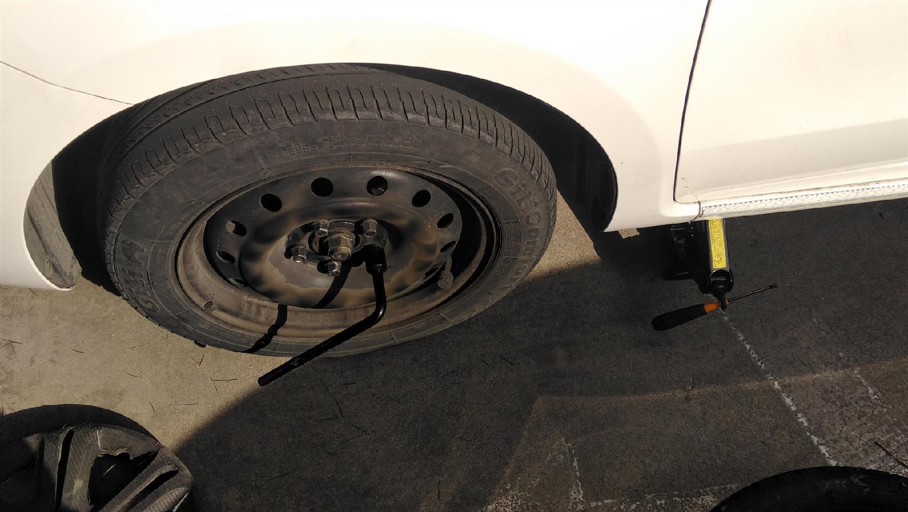 先把輪胎螺栓擰松,2萬公里沒動表示需要搬起來備胎使勁砸,沒法拍照,自己琢磨
