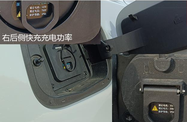 車身左前和右后側增加了慢充和快充兩個充電口,支持快/慢充電、220V電源隨意充電,快充25分鐘能充滿30%-80%。
