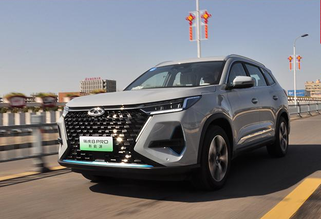外觀上,與瑞虎8 Pro燃油版沒有大變化,增加了一些新能源車的識別標志。