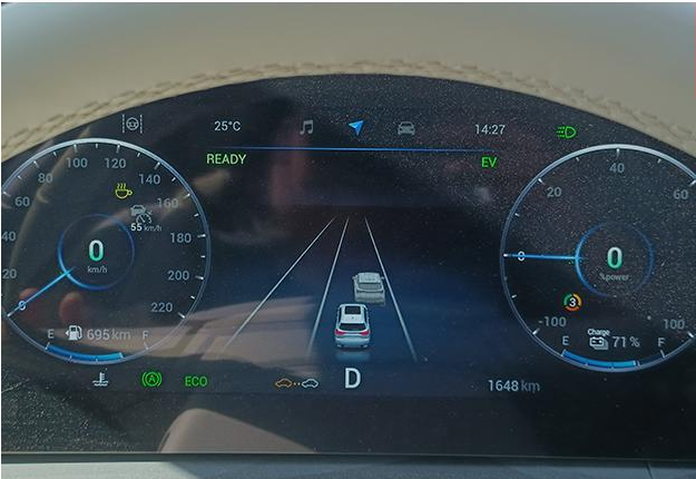 在駕駛中可自由切換的為:eco(EV、HEV)、normal(EV、HEV)、sport(HEV),即經濟、標準、運動三種,通過3擋DHT檔位速比,實現多達9種功能模式11個組合檔位,當然這么多的細微駕駛區別在實際使用中都是由控制系統實時計算自動實現的,用戶只需要簡單的選擇EV、HEV,以及三種不同的駕駛模式。