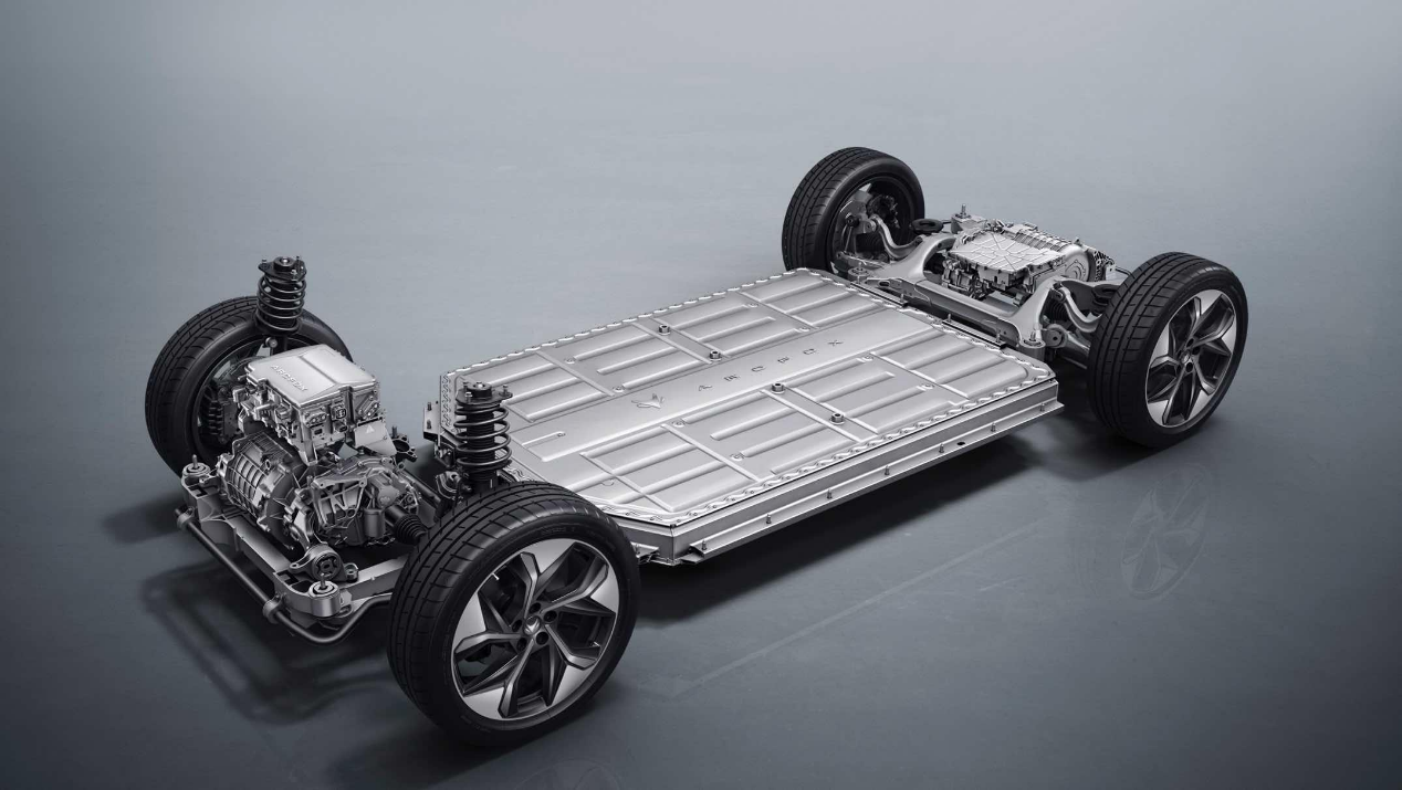 車身材料使用一體式真空高壓鑄鋁合金航空鋁及先進超高強度鋼,甚至在攸關乘員生命安全的A柱、B柱及門檻梁等位置應用了強度高達1500MPa的熱成型硼鋼,這種材料多被用在坦克、潛艇和航天飛機上,每平方厘米能承受10噸以上的壓力,是普通鋼的4倍,極大程度提高了正面碰撞和側面碰撞的防護能力。底盤是全副輕量化的鋁制副車架,橫縱梁位置應用高潰縮性能鋁合金型材,既能夠吸收又能分散側面撞擊物帶來的能量。