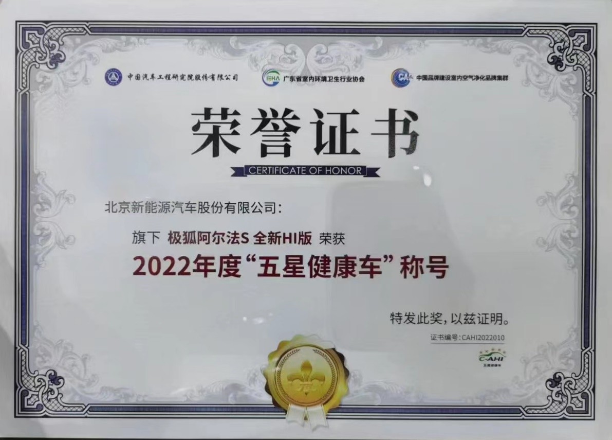 時鐘回撥到極狐森林版上市前夕,師出同門的極狐阿爾法S 全新HI版獲得了由中國汽車工程研究院主導的中國汽車健康指數(C-AHI)全五星認證,中國工程院院士鐘南山親自為極狐汽車頒發了“五星健康車”證書,成為極狐汽車在汽車安全健康上的權威質量注解!如果再把時鐘往前撥,你會看到還有“中國十佳車身”、“最佳材料”、“中國汽車耐腐蝕與老化性能評價(CA-CAP)白金等級認證”等等諸多榮譽加身。