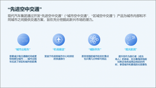 現代汽車集團正在通過開發AAM“先進空中交通”產品為城市內部和不同城市之間提供交通方案。這將開辟城市和區域交通的新形式,解決當前和未來城市的出行問題,將任何地區的人們連接到他們的最終目的地,真正提供無縫和全面的城際交通解決方案。屆時,將消除城市交通的限制,讓人們把時間用在更有意義的事情上,同時又創建出一個多元化的社區,讓城市更有活力。