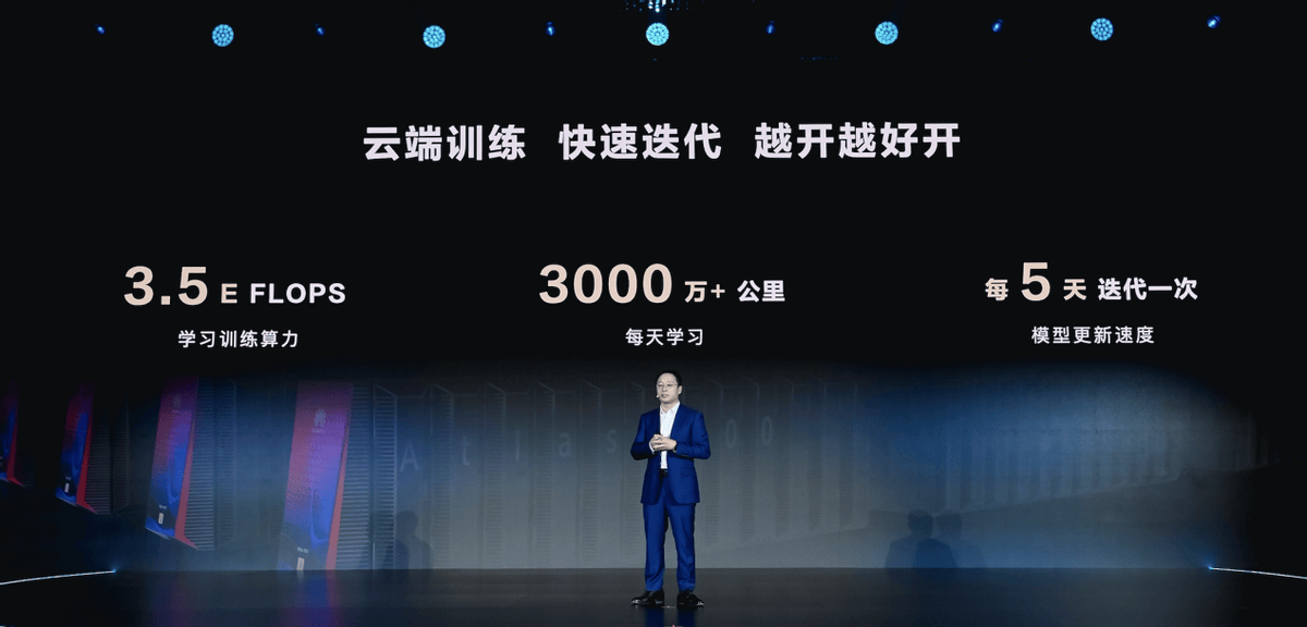 依托華為云強大的底座能力,實現能力的快速迭代。算力方面達到 3.5E FLOPS,訓練數據量已達日行3000萬公里,半年實現3倍增長,模型每5天迭代一次。