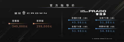 當晚,一汽豐田汽車銷售有限公司常務副總經理清水卓治,代表一汽豐田正式發布全新皇冠口號:Discover Your Crown。搭載Multi-stage HEV多級混動的全新皇冠也正式上市,并提供至尊版和至享版2版車型,至尊版:34.9萬元;至享版29.9萬元。