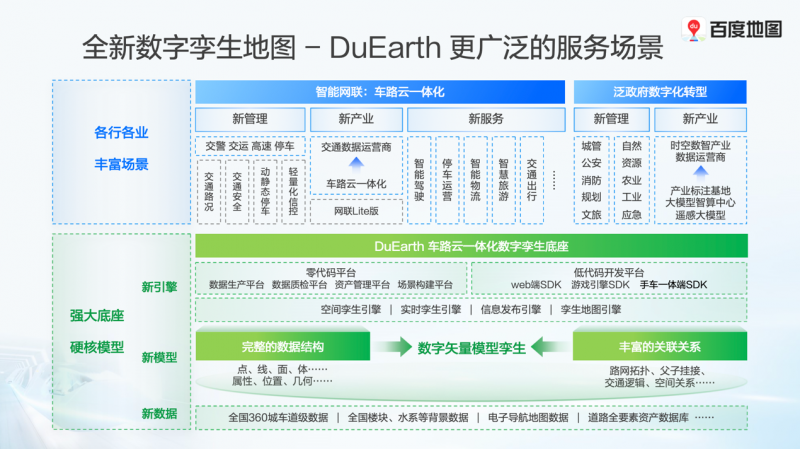 “當(dāng)前,智能網(wǎng)聯(lián)正在從示范期邁入大規(guī)模車路云一體化應(yīng)用期,‘聰明的車、智慧的路、強(qiáng)大的云’更加深度融合的背后,離不開一張實(shí)時(shí)更新的地圖,特別是離不開一個(gè)懂網(wǎng)聯(lián)、懂智駕、懂云控的數(shù)字孿生地圖底座。DuEarth已經(jīng)覆蓋了360城360萬(wàn)公里,成為了全國(guó)最大規(guī)模的車路云數(shù)字底座,可以助力中國(guó)智能網(wǎng)聯(lián)從示范階段進(jìn)入到大規(guī)模應(yīng)用階段,為公眾出行帶來(lái)更多獲得感。百度地圖本次發(fā)布的DuEarth 因智能網(wǎng)聯(lián)而生,卻不止于網(wǎng)聯(lián),也會(huì)賦能泛政府?dāng)?shù)字化轉(zhuǎn)型、助力更多新產(chǎn)業(yè)場(chǎng)景。”
