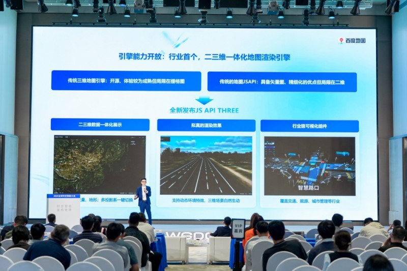 此外,百度地圖重磅推出國內首個二三維一體化地圖引擎JSAPI Three,打破傳統二維三維割裂現狀。一鍵切換投影系,柵格、矢量、地形等數據無縫疊加,內置天空、光照、天氣等動態特效,視覺效果直追3A游戲大作。全面支持Three.js原生API,真正做到行業級3D地圖體驗的一體化升級。