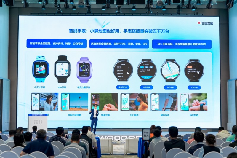 智能穿戴領域,百度地圖智能手表導航功能已覆蓋50+主流智能手表型號,實現搜索、路線規劃、獨立導航、公交查詢等功能,累計搭載量超5000萬。無論跑步騎行,抬手即見地圖,出行更自在。
