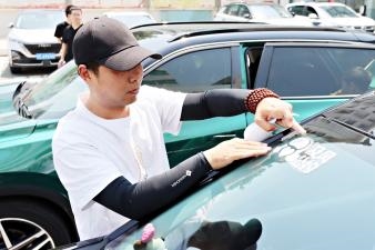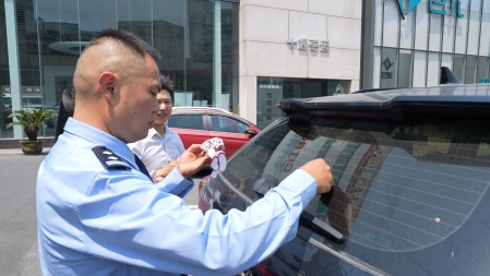 (交警和車主共同張貼及風公約車貼,加入愛心車主隊伍)