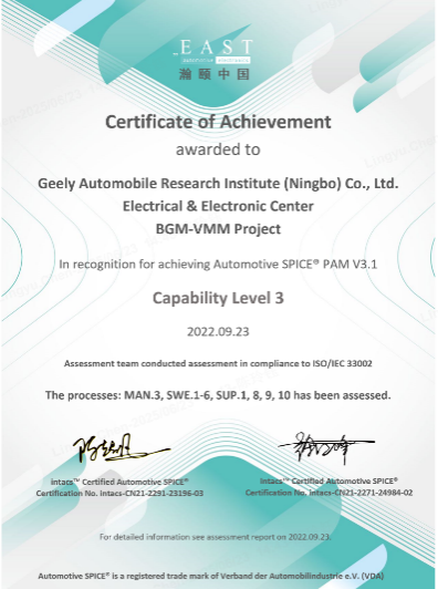 本次是繼2022年9月吉利汽車首次獲得Automotive SPICE-CL3認證,開啟軟件質量保障體系新篇章后,再次獲得權威機構認證。吉利汽車研究院也成為全球首個通過軟件質量體系"3A"能力認證(Automotive SPICE-CL3/ASQMS/AUTOSQS)的企業(yè),這份"3A"認證,標志著吉利率先推動多維度國際標準的融合,突破了單一認證的局限。