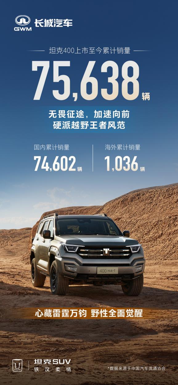 坦克400上市兩年取得75638輛的銷量成績,是其產品優異的保值率,獨特的機甲原創設計、卓越的安全性能以及強大的越野能力等多方面優勢共同作用的結果。它不僅為消費者帶來了獨特的出行體驗,更在硬派越野市場中樹立了新的標桿。未來,坦克400將繼續憑借自身的優勢,為越野圈層帶來更多啟示,推動行業創新發展,成為硬派越野市場中不可或缺的重要力量。