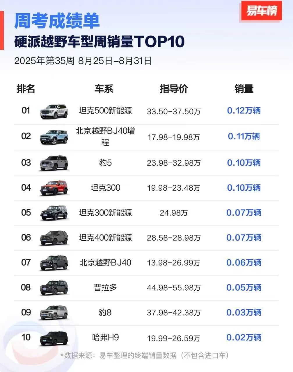 在競爭日趨白熱化的SUV市場中,一款新車需要多久才能贏得市場認可?全新坦克500的答案令人驚嘆——上市僅5天,便以1298輛的交付成績斬獲易車平臺硬派越野車型周銷量榜首。這一成績不僅印證了全新坦克500強大的市場號召力,更一舉打破了中大型插電混動SUV市場格局。