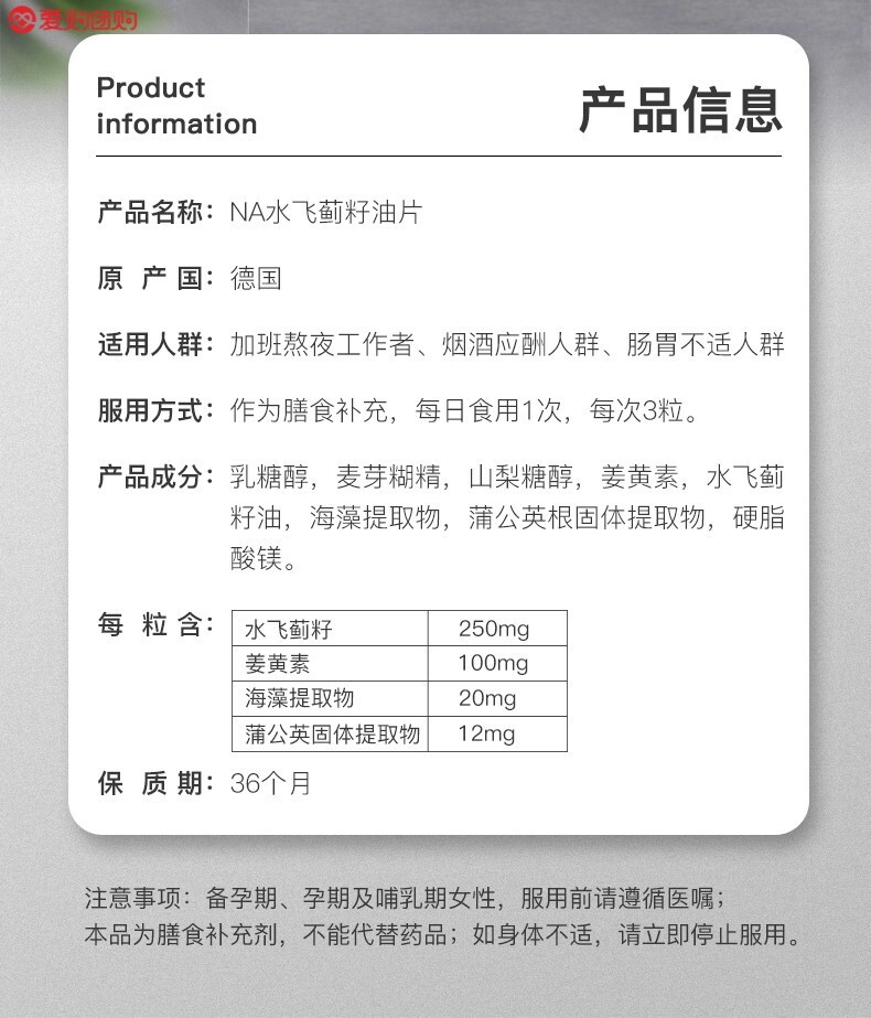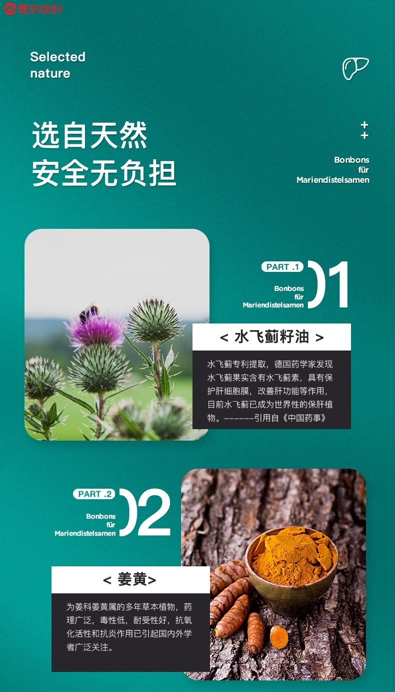 ??采用了水飛薊籽、姜黃、蒲公英、海藻等濃縮而成~