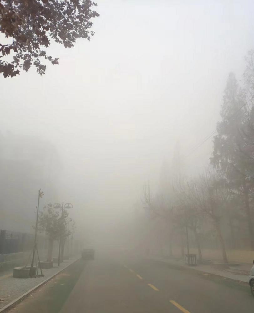 看了不,這就是北緯36度半的冬日清晨,霧氣籠罩這個十八線小縣城,就是這么妖嬈,車身掛滿霜。