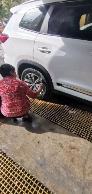 擦完之后大姐不知道在輪子周圍給涂抹的什么,每個輪子都要涂一遍
